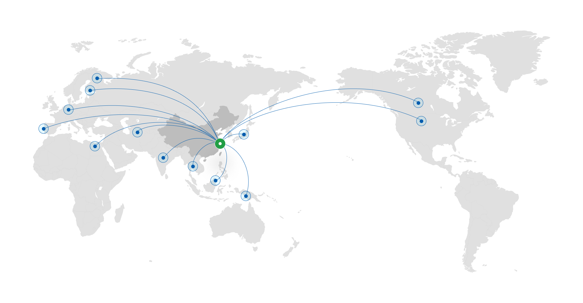 主要(yào)出口區(qū)域:日(rì)韓、歐美(měi)、東(dōng)南(nán)亞、中亞、中東(dōn¥g)地(dì)區(qū)。